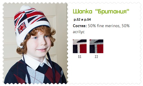 Яркая весенняя шапка для мальчика на завязках, декорирована шевроном в виде британского флага и помпоном. Модель с ушками утеплена подкладкой из флиса.