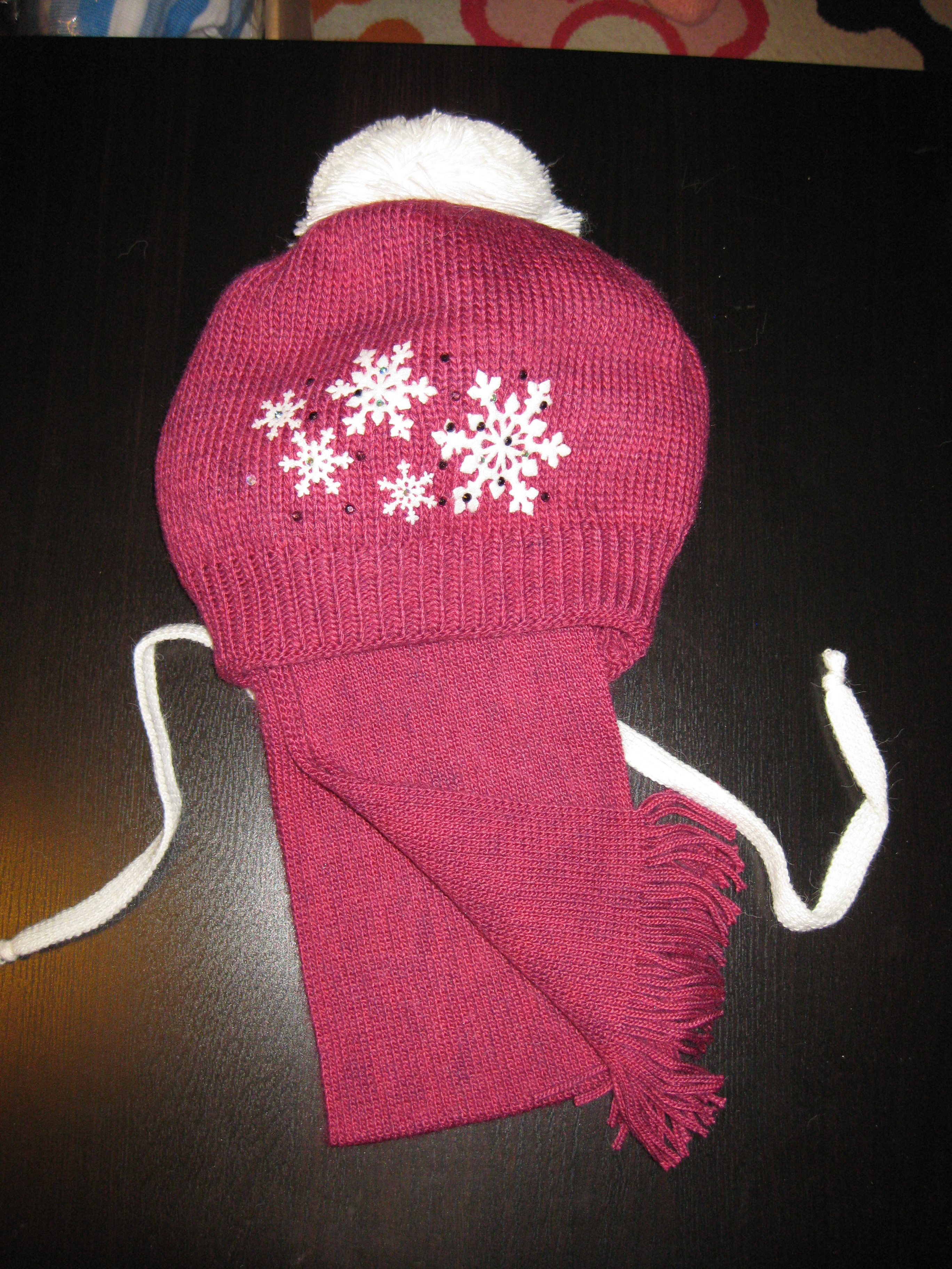Сделан беретиком, меха нет, но двойная толстая вязка. (Очень красивый))